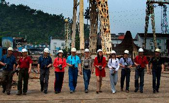 (图为6月20-22日太仓市工会干部在浙江临海县造船厂采风)
