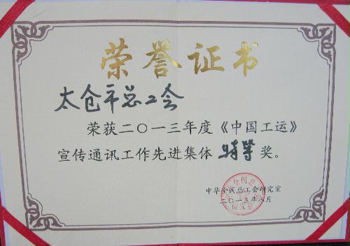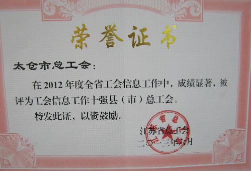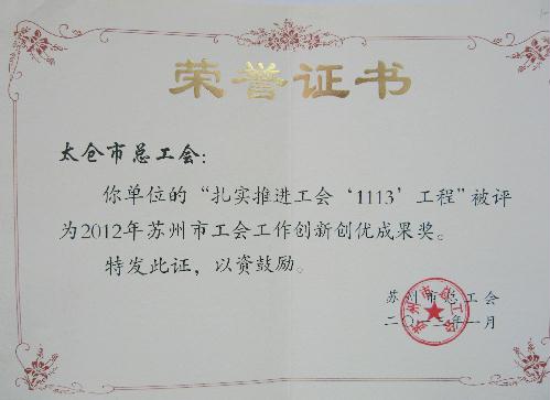 “扎实推进工会‘1113’工程”获评2012年苏州市工会工作创新创优成果奖