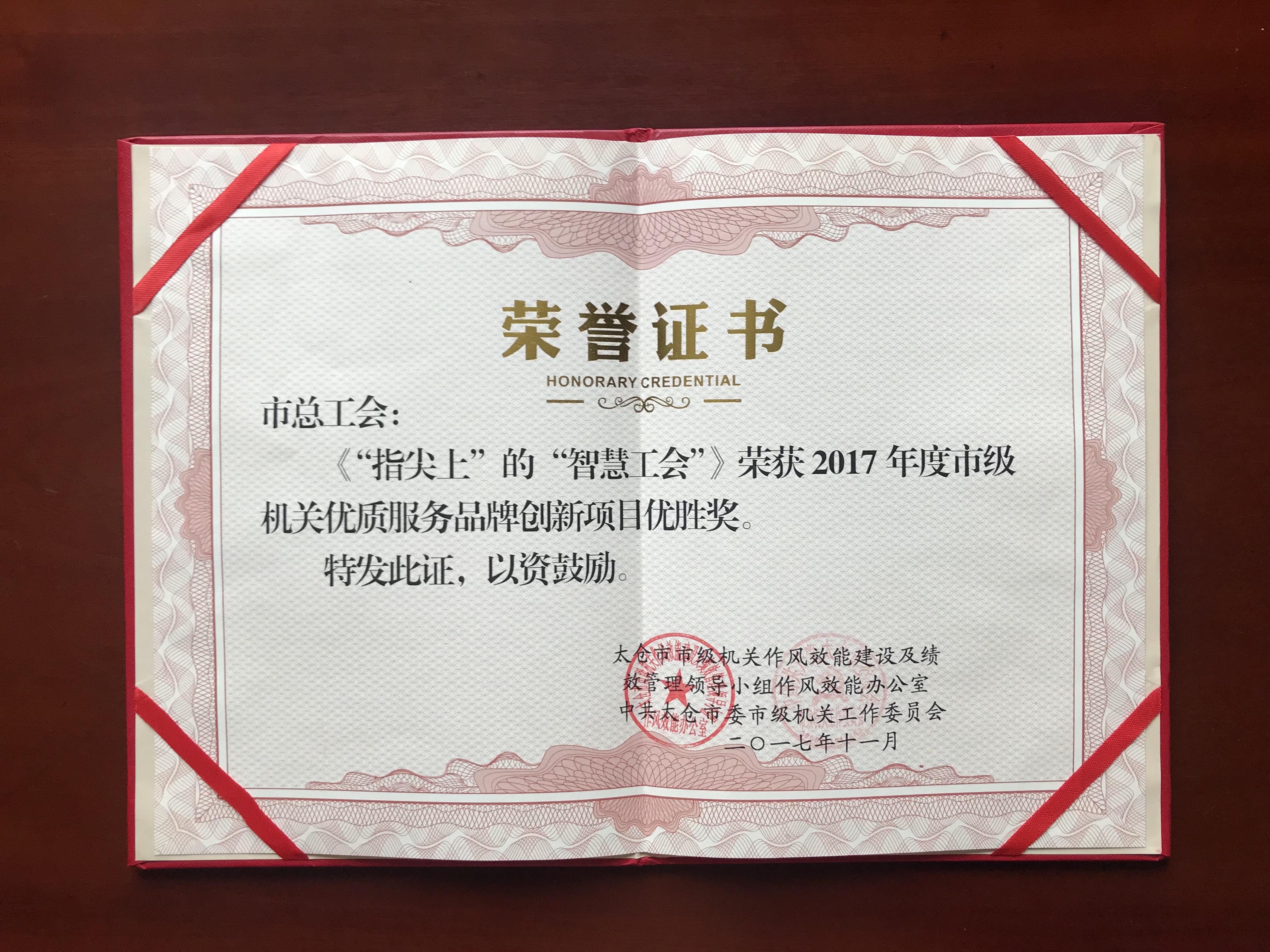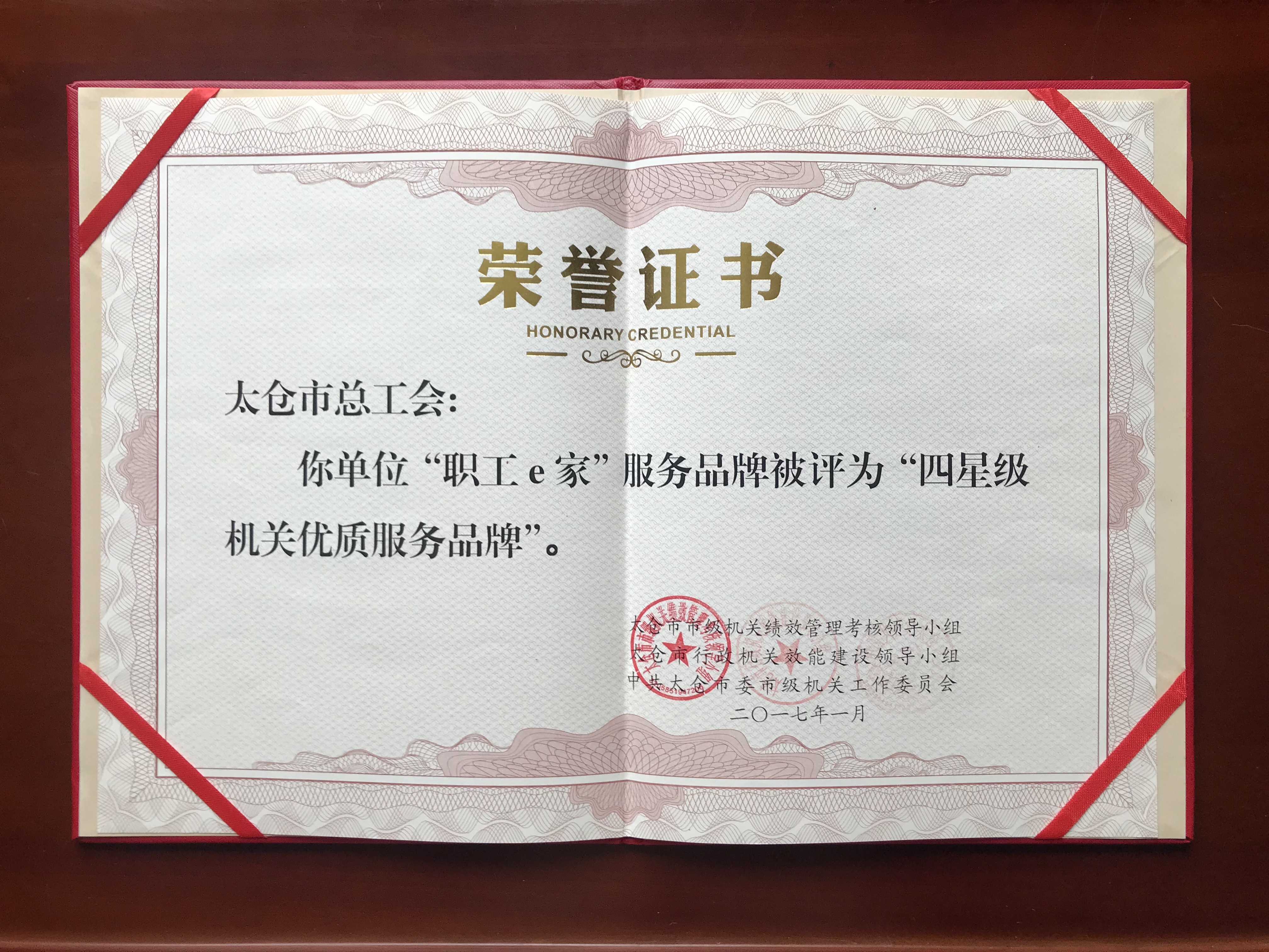“职工e家”服务品牌被评为“四星级机关优质服务品牌”
