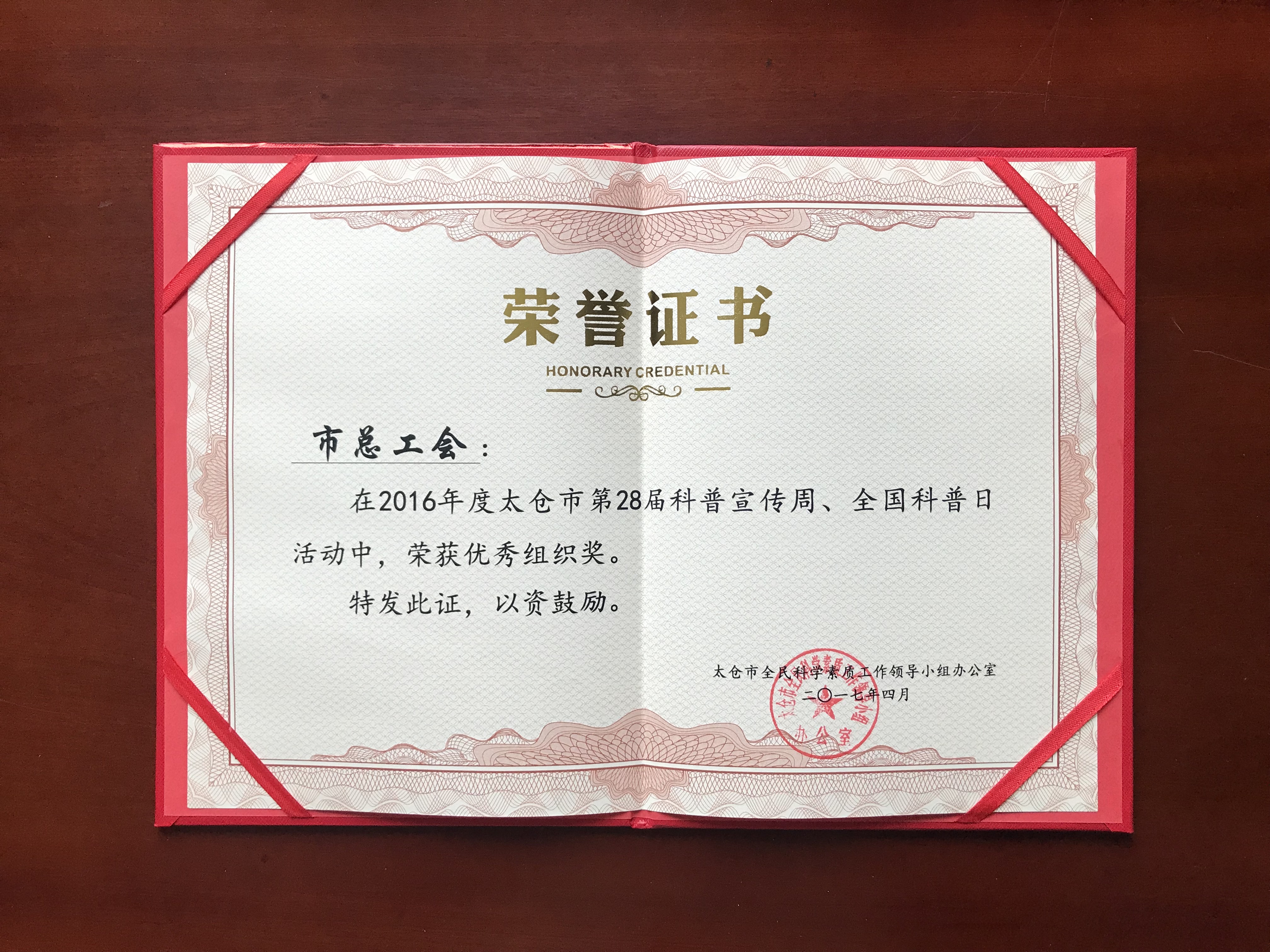 第28届科普宣传周、全国科普日活动优秀组织奖