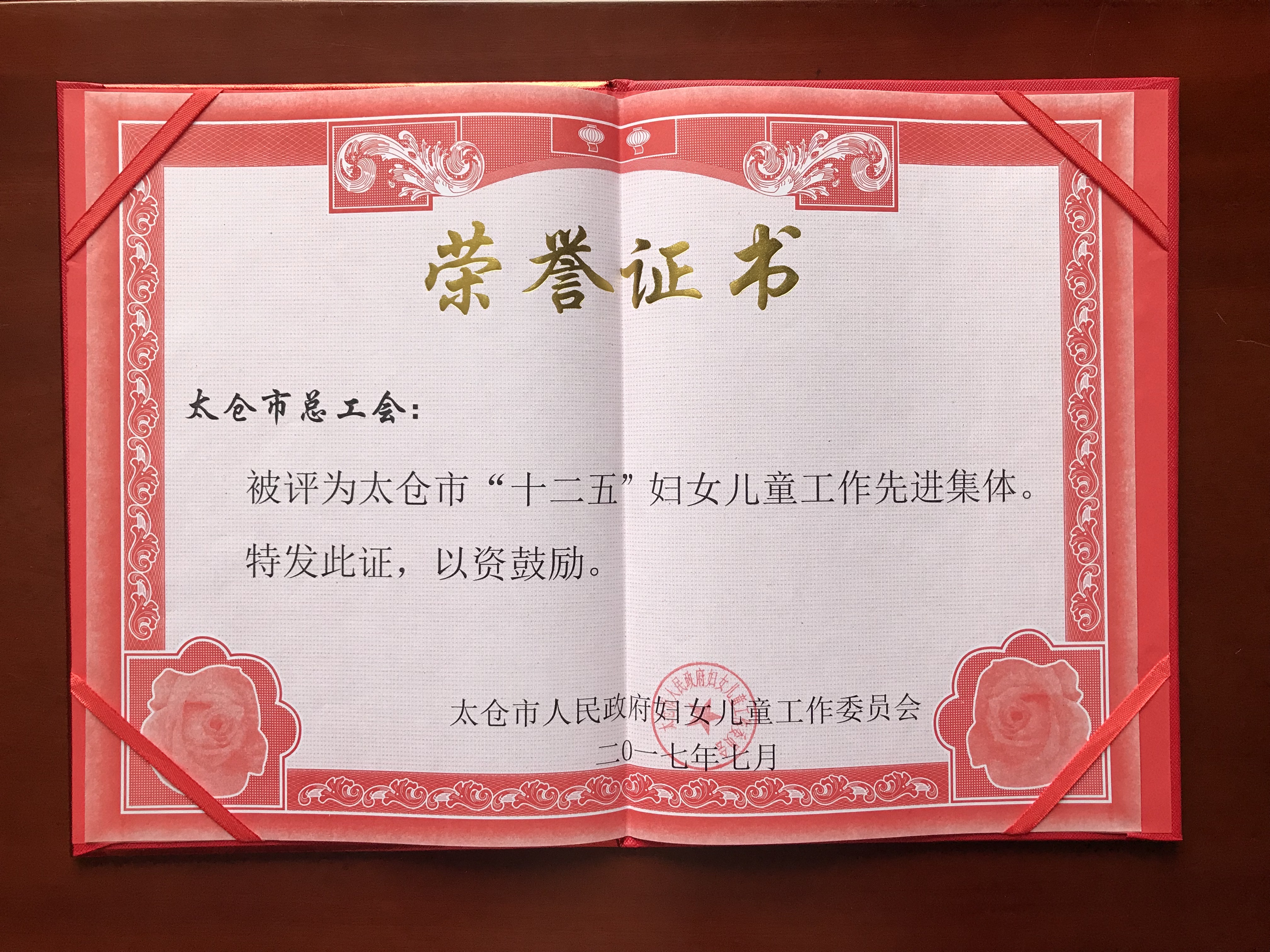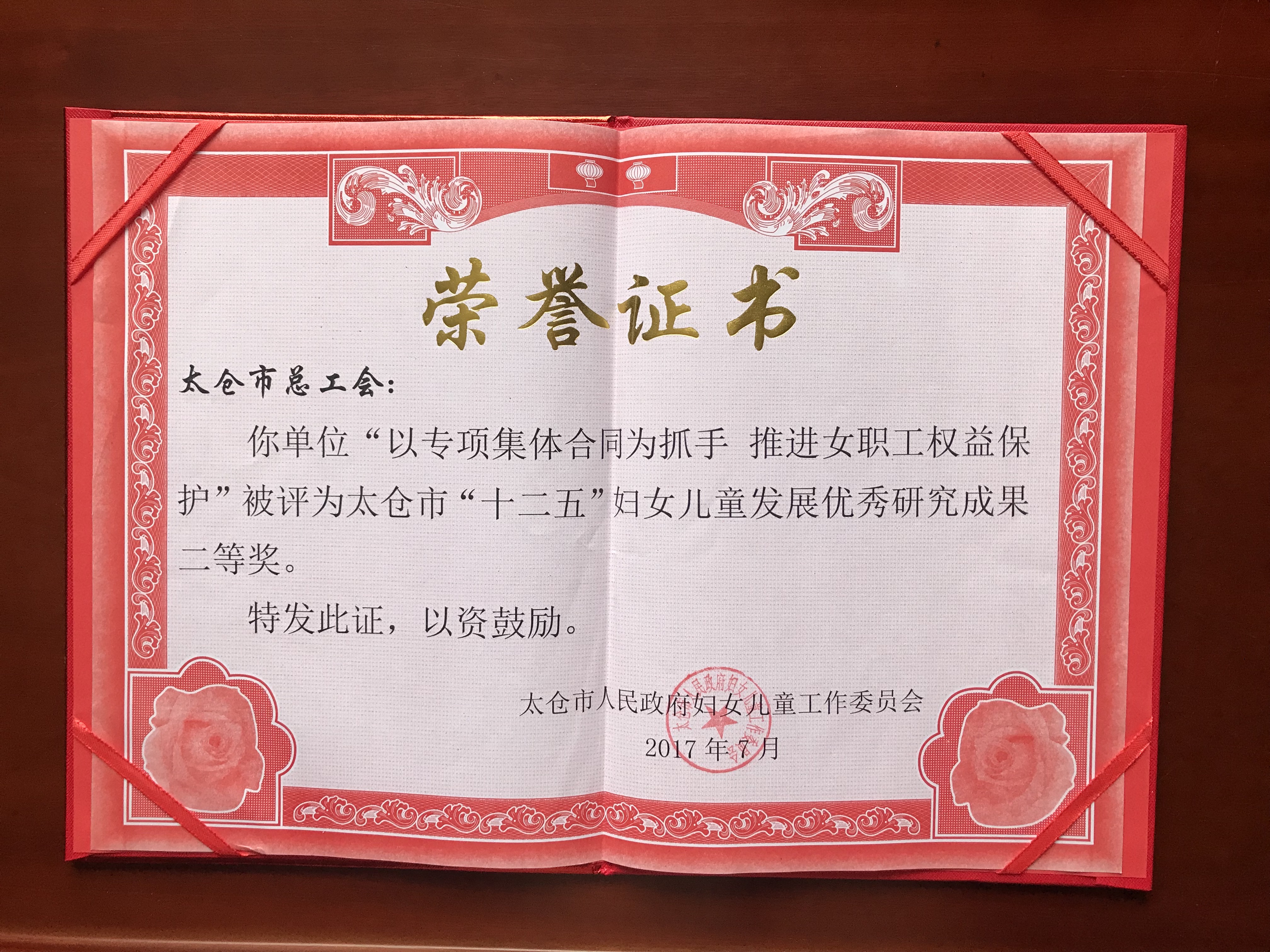 获太仓市“十二五”妇女儿童发展优秀研究成果二等奖