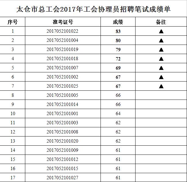 www55365com2017年工会协理员招聘笔试已于2017年5月21日结束,现将笔试成绩公示如下。咨询联系电话:0512—53522486