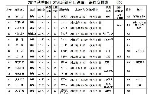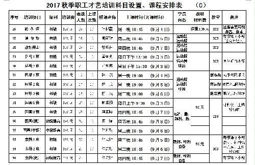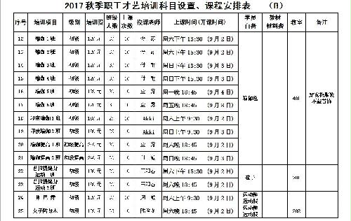 2017职工才艺培训(秋季班)课程安排表
